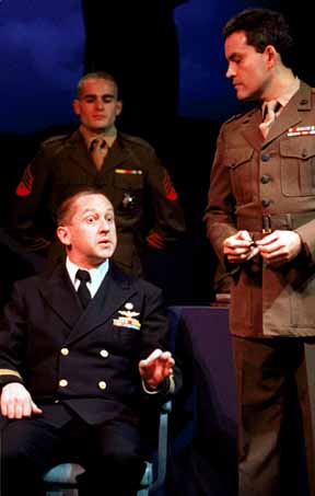 Smilin' Jack Ross (John Hale) cross examines Cmdr. Walter Stone (John Tangney)